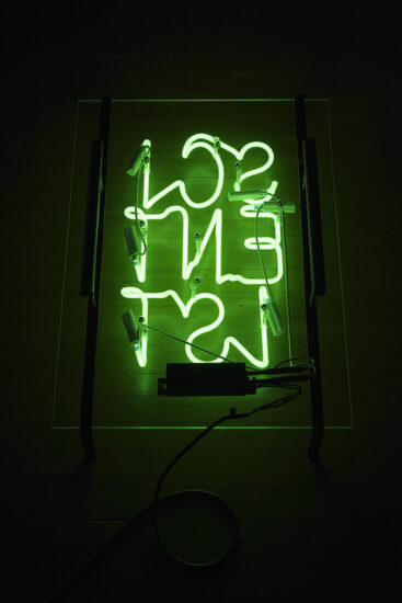 , 2025.Neon tubing,Plexiglas, steel, transformer, and cord